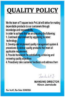 The team of T-Square Tools Pvt. Ltd. will strive for making dependable products
